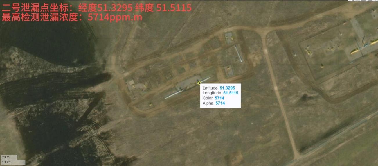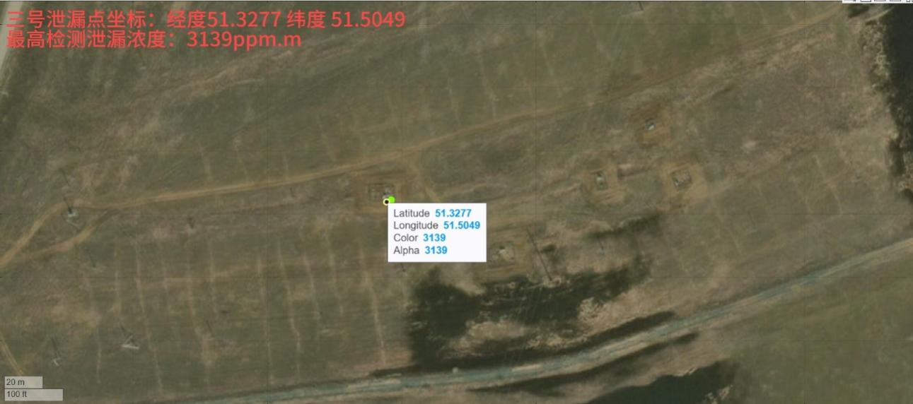 三处泄漏点坐标及最高检测泄漏浓度